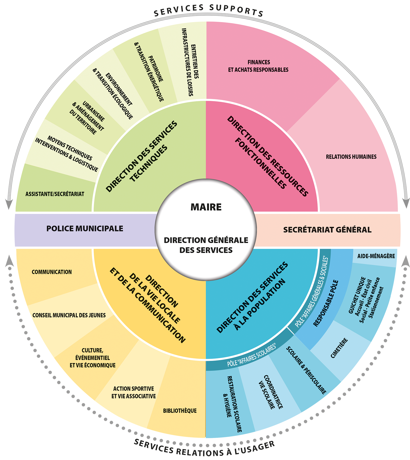 Voici l'organigramme qui régit l’organisation des services de la mairie de Villennes-sur-Seine (mise à jour 03/2026)